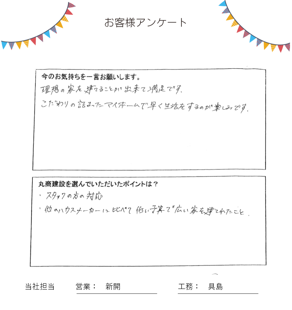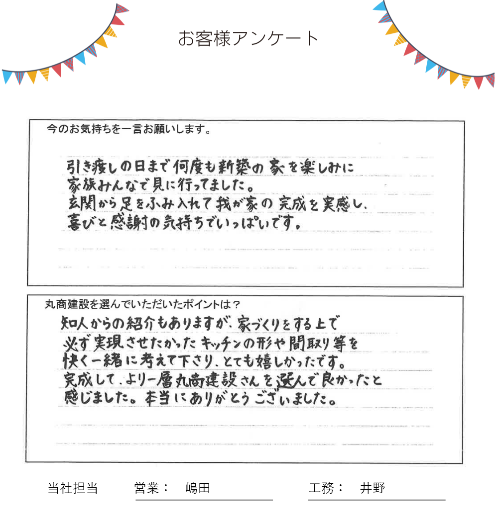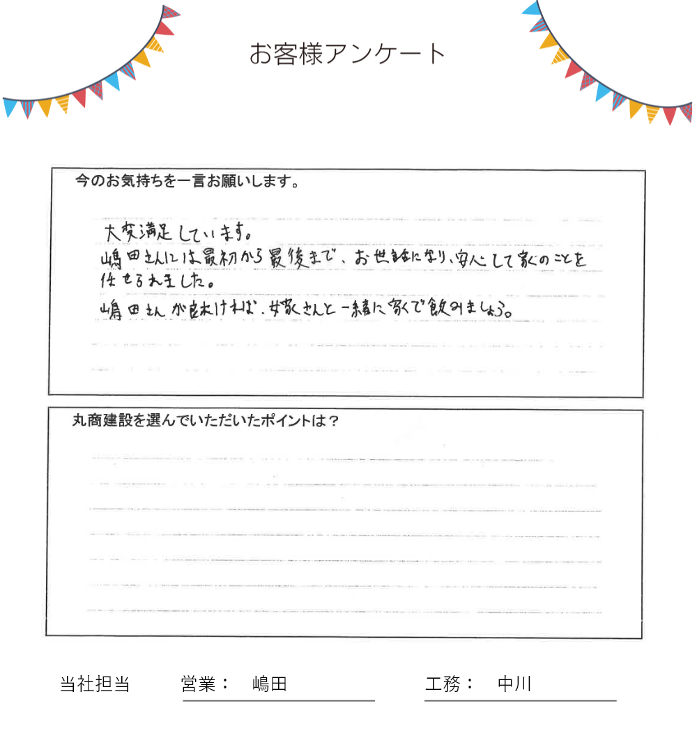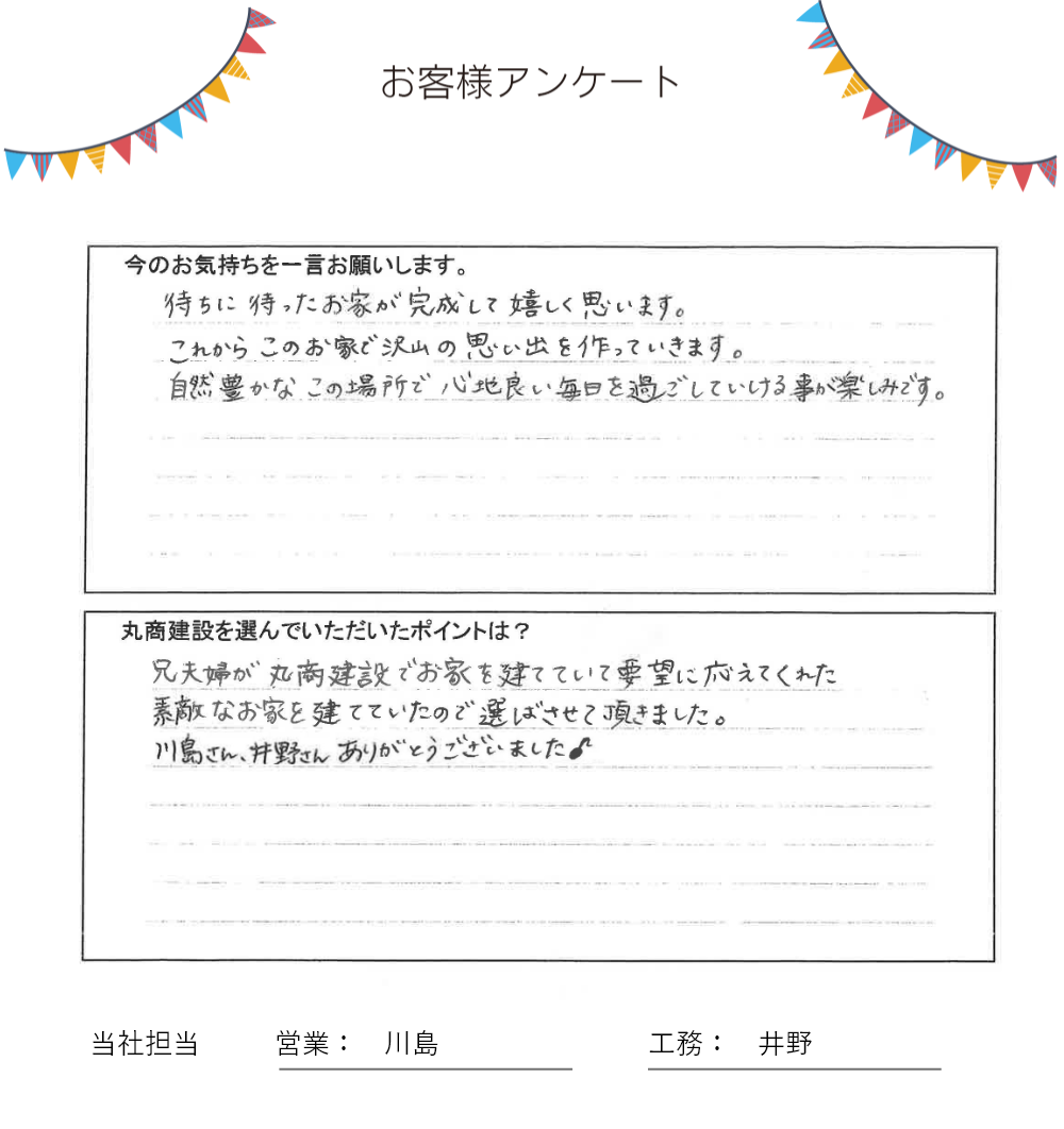 お客様より、心に響く嬉しいお言葉を頂戴しました。温もりあふれるメッセージに、スタッフ一同大きな励ましをいただいております。