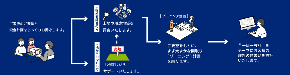 ご希望・ご要望に沿った、一邸一邸完全オーダーメイドのプランを作成します