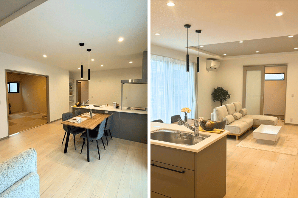 開放感たっぷりのリビングに、くつろぎや客間として使える和室をプラス。シーンに合わせて空間を使い分けできます。