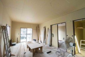 前回は断熱材が入っている様子を撮影しましたが、今回はそこから、壁一面にボードを取り付けていきました。