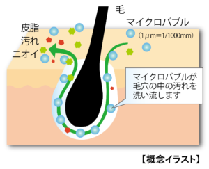 浴槽のお湯に マイクロバブル(超微細気泡) を発生させること。