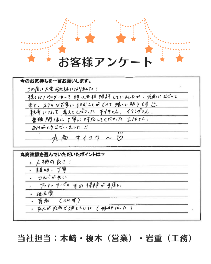 数あるハウスメーカーの中から丸商建設をお選びいただき、誠にありがとうございました😊