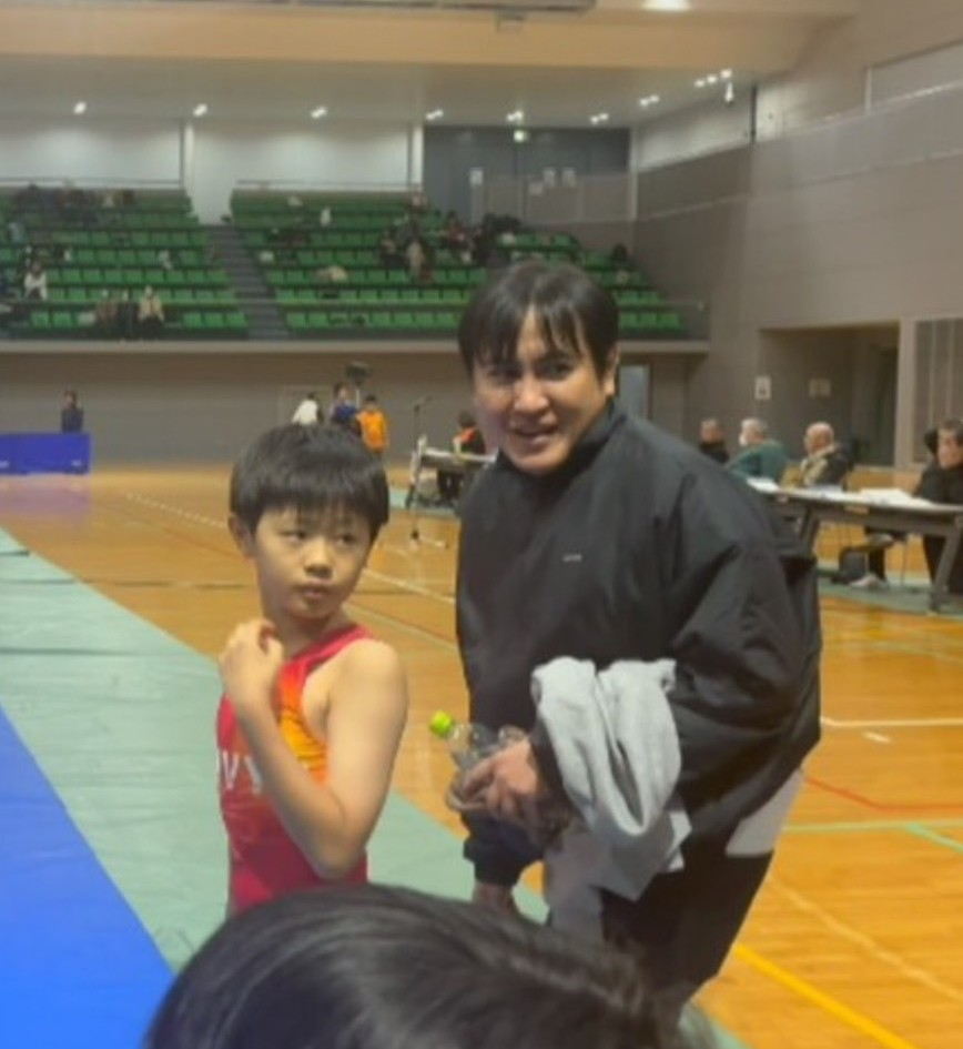 マットの上で戦っているのは息子。