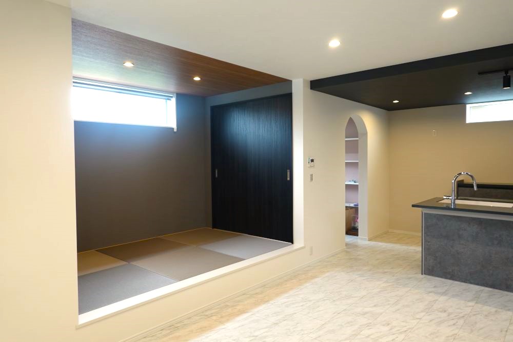 キッチンから広々としたリビング、小上がり和室と部屋全体を見渡すことができます。