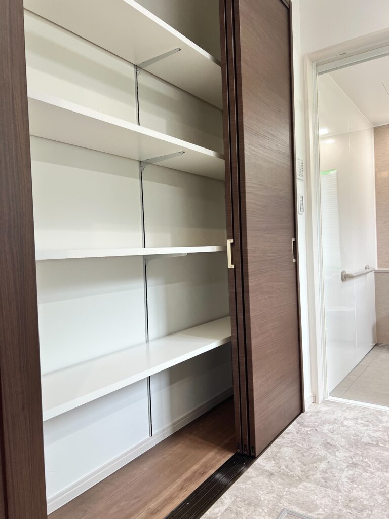 洗面脱衣所には扉付きの収納を!生活感をしっかり隠しながらも大容量です♪