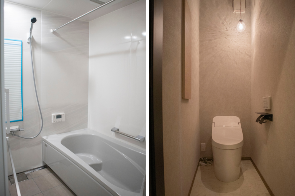 バスルーム・トイレはあえて窓なしの設計にすることで外気の影響を受けにくく、
