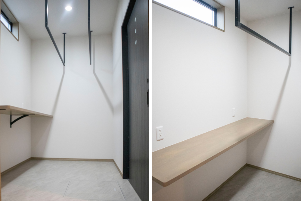 衣類乾燥機「幹太くん」を置けるようにしっかり広さを確保した空間です。
