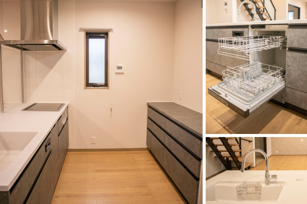 キッチンは使い勝手の良さにとことんこだわって、センサー水栓&フロントオープンの食洗器を採用!