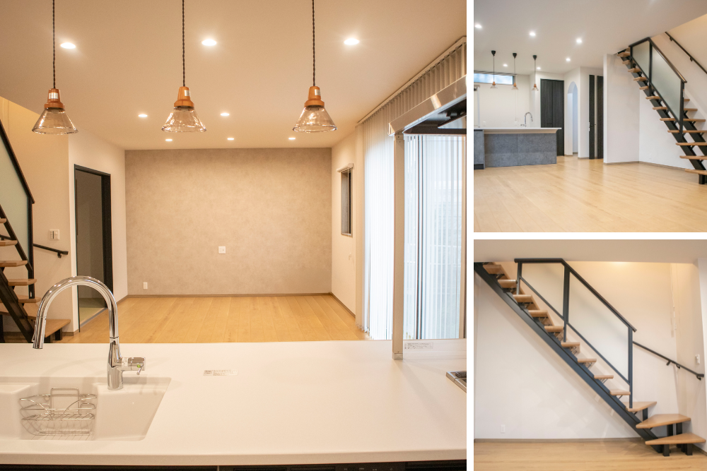 オープン階段がインテリアのアクセントになり、自然と家族が集まる“お家の中心”になっています✨