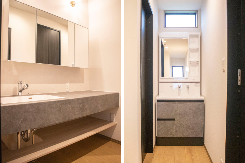 洗面台は1階と2階にそれぞれ洗面所を配置。